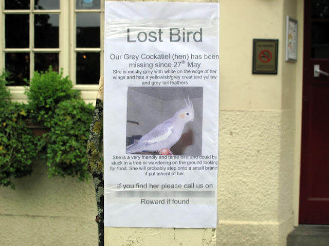 Around in Oxford. I feel sad for the people that lost their bird. Let me know if you have seen it.